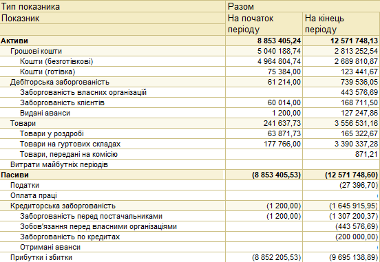 Комплект фінансової звітності (Управлінський баланс, Фінансові результати, Рухи грошових коштів) може формуватися по підприємству в цілому, в розрізі організацій (юридичних і фізичних осіб) та напрямів діяльності (сегментів).