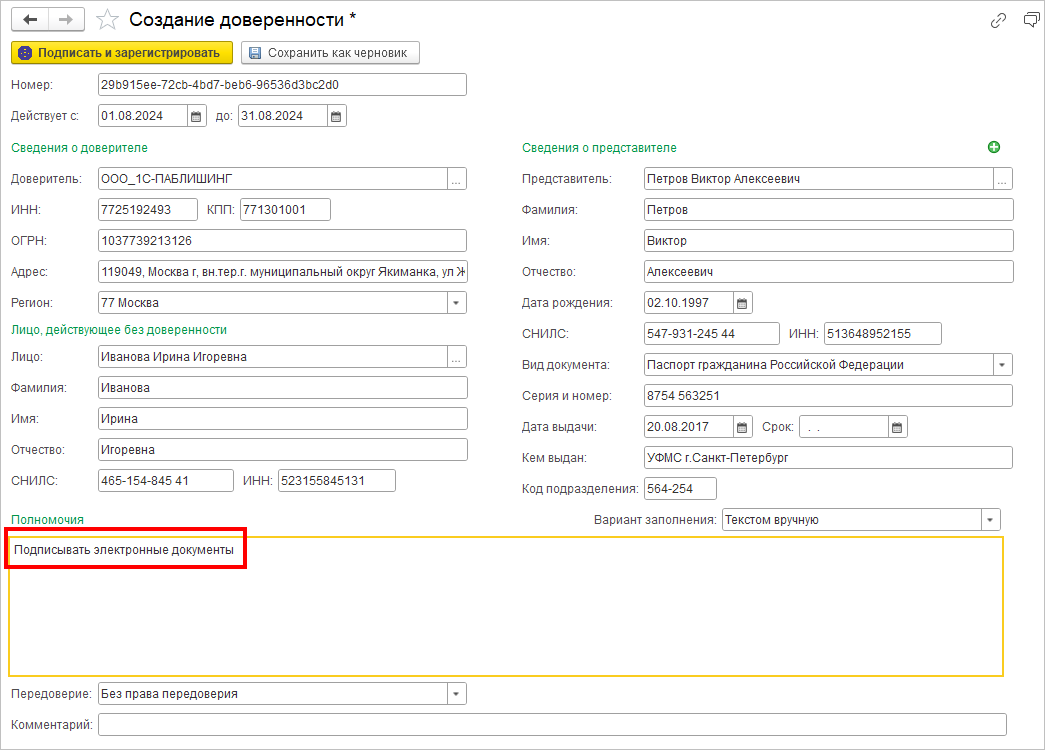 «Все полномочия»). При этом для МЧД с текстом "Подписывать электронные документы"