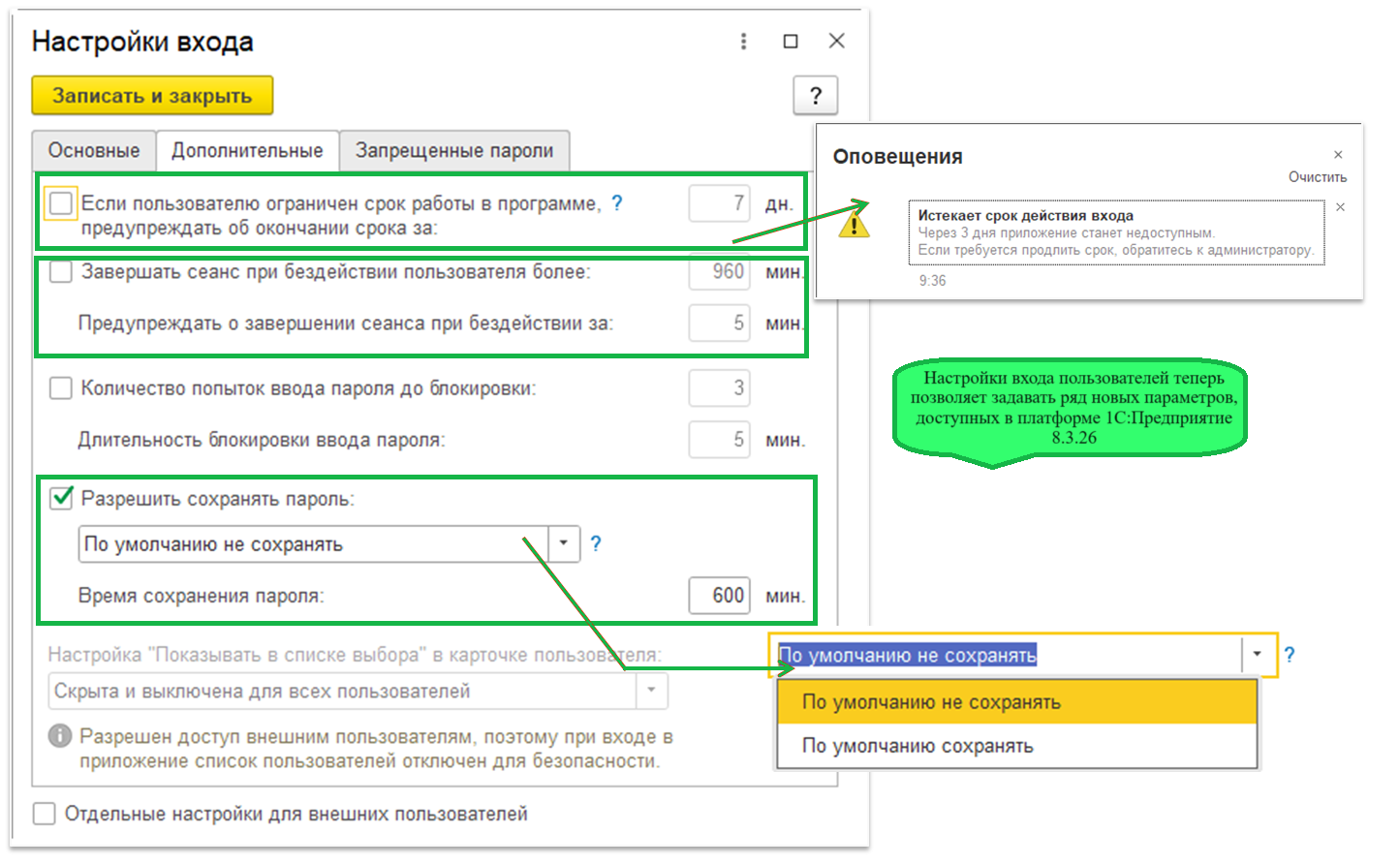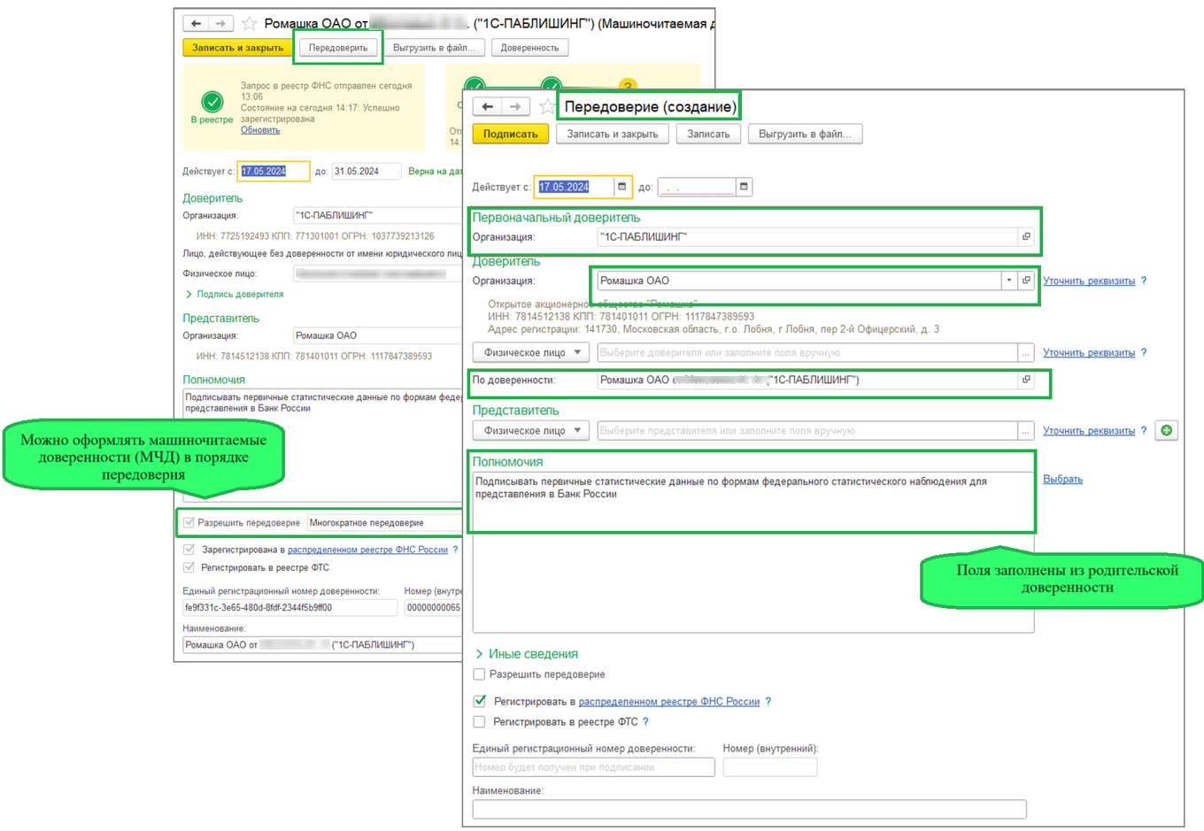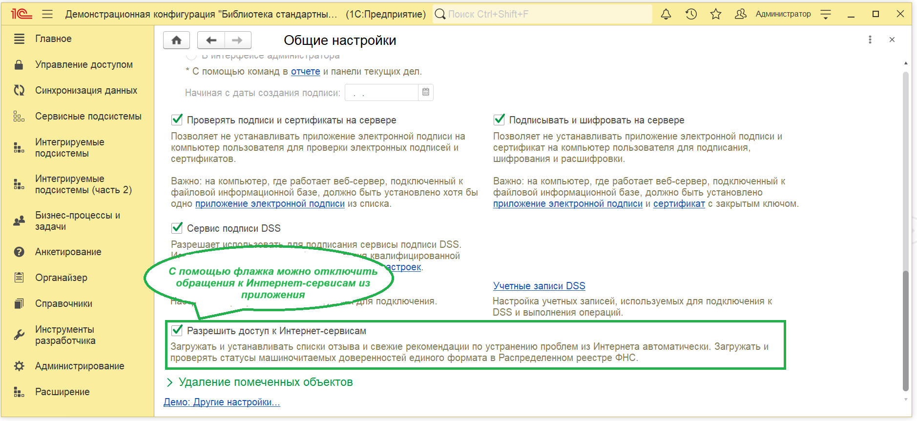 СтандартныйВариант в процедуре УправлениеДоступомПереопределяемый.ПриОпределенииНастроек (подробности см. в документирующем комментарии к ней). Это полезно, как для конфигураций, разработанных сразу только с производительным вариантом ограничения доступа, так и для конфигураций, которые запланировани отказ от поддержки стандартного варианта.ОграничениеНаУровнеЗаписей в процедуре УправлениеДоступомПереопределяемый.ПриОпределенииНастроек (подробности см. в документирующем комментарии к ней). Это полезно, как для конфигураций, разработанных без использования ограничений доступа на уровне записей, так и для специальных сборок конфигураций, например, для базовых версий (если в них не планировалась поддержка RLS). Для более точного подбора доверенностей в параметр ОписаниеДанных процедур Подписать и ОтправитьНаПодписание общего модуля ЭлектроннаяПодписьКлиент добавлено необязательное свойство ОтборДоверенностей. В этом свойстве можно указать организацию или ИНН доверителя, код полномочий, по которым будет производиться поиск доверенности, а также ключ для сохранения выбранной доверенности по сертификату в персональных настройках.