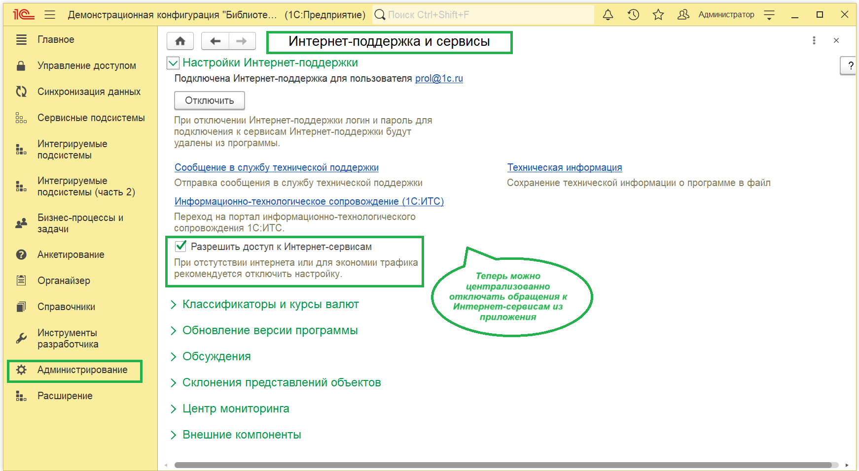 СнимкиОтчетов. См. примеры его использования в общем модуле _ДемоОбменМобильныйКлиент.ВариантыОтчетовПереопределяемый.ПередДобавлениемКомандОтчетов при определении команд отчетов, можно установить свойство Неконтекстный. Если Истина, то будут доступны для выбора другие варианты этого отчета, возможность добавления в избранное, получение ссылки на вариант отчета. Значение по умолчанию: Ложь.ПодключитьКомпонентуИзМакета и функция ПодключитьКомпонентуИзМакетаАсинх общего модуля ОбщегоНазначенияКлиент теперь возвращают символическое имя и местоположение, из которого была подключена компонента: имя макета или навигационную ссылку на внешнюю компоненту из справочника, если ее версия выше. Используя символическое имя и местоположение, можно проверять подключение компоненты методом платформы ПроверитьПодключениеВнешнейКомпоненты.ПодключитьКомпонентуИзМакета и функции ПодключитьКомпонентуИзМакетаАсинх общего модуля ОбщегоНазначенияКлиент теперь необязательно показывать предложение об установке, а сразу начинать установку компоненты. Для этого в функции-конструкторе ПараметрыПодключенияКомпоненты этого же общего модуля предусмотрено свойство ПоказыватьВопросУстановки. Его рекомендуется указывать лишь в случаях, когда дополнительное информирование об установке компоненты избыточно (например, уже проинформировали ранее).ЗащитаПерсональныхДанных.УдалитьИнформациюОбУничтоженииПерсональныхДанных.ЗащитаПерсональныхДанных.СубъектыСИстекшимСрокомХранения можно получить субъекты с истекшим сроком хранения персональных данных.РаспознатьАдрес в процедуре ДобавитьКонтактнуюИнформацию общего модуля УправлениеКонтактнойИнформацией теперь можно отключать распознавание адреса по его представлению согласно адресному классификатору ГАР. В этом случае представление адреса, переданное в параметре ЗначениеИлиПредставление, будет записано в информационную базу без значения полей этого адреса. Это может быть востребовано, когда хранение полей адреса в информационной базе избыточно.УправлениеКонтактнойИнформацией предусмотрены функции СведенияОбАдресе и СведенияОбАдресах. Эти функции возвращают адрес в структурированном виде, что упрощает его использование при оформлении заказов, доставок и интеграции с внешними сервисами, требующими точного указания адреса.