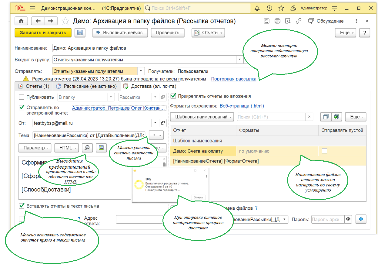 КонецПроцедурыОтправитьПочтовоеСообщение отмечена как устаревшая, вместо нее следует использовать функции ОтправитьПисьмо, если выполняется отправка одного письма, и ОтправитьПисьма, если функция ОтправитьПочтовоеСообщение вызывалась в цикле. Для упрощения перехода на новые функции предусмотрена вспомогательная функция ПодготовитьПисьмо, параметры которой повторяют параметры функции ОтправитьПочтовоеСообщение в части подготовки письма. Рекомендуется произвести соответствующие замены.ОпределитьФормуПрисоединенногоФайла общего модуля РаботаСФайлами отмечена как устаревшая, вместо нее рекомендуется использовать одноименную процедуру общего модуля РаботаСФайламиКлиентСервер. Рекомендуется пересмотреть места использования этой процедуры.ДобавитьФайл общего модуля РаботаСФайлами для параметра ПараметрыФайла (тип Структура) предусмотрена функция-конструктор ПараметрыДобавленияФайла в этом же модуле. Для усиления контроля типизации, в частности, при появлении новых обязательных свойств данной структуры, рекомендуется провести замену всех мест «ручной» инициализации структуры на вызов функции-конструктора.Исправительные релизы библиотеки отличаются только четвертой цифрой в полном номере версии, например: 3.1.2.1, 3.1.2.20, 3.1.2.300 и т.п. Для обновления на исправительные релизы предназначена внешняя обработка ОбновлениеНаИсправительнуюВерсиюБСП.epf из комплекта поставки, которая позволяет существенно сэкономить время при регулярных обновлениях (например, еженедельных).